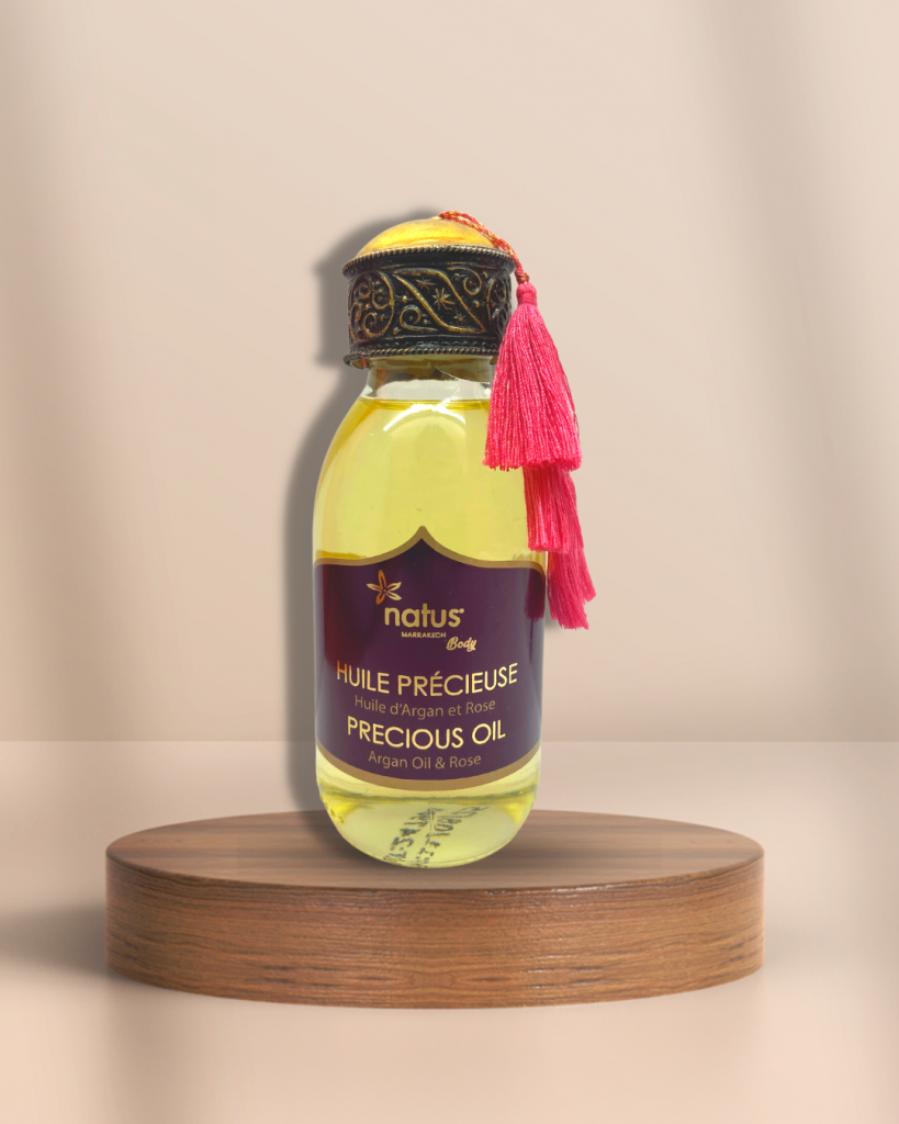 L’HUILE PRÉCIEUSE, pour une Escale à Ispahan, la Rose, c’est une huile alliant les propriétés régénératrices de l’huiles d’Argan et les vertus hydratantes de l’huile d’Amande douce. Sa texture lisse et voluptueusement parfumée aux fragrances envoûtante, laisse votre peau hydratée et parfumée. CONSEILS D’UTILISATION: Apliquer quotidiennement sur le corps et la pointe des cheveux. Ne pas rincer.